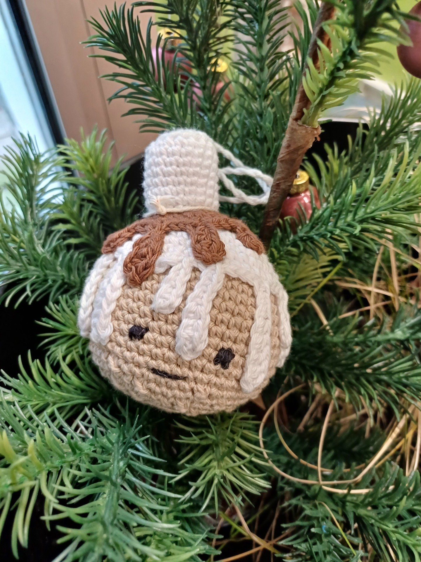 Boule pour sapin au crochet : Mon petit pain d'épice chamallow