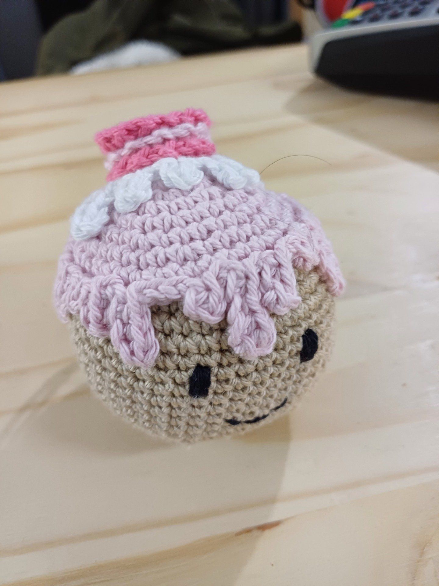 Boule pour sapin au crochet : Mon petit pain d'épice macaron fraise