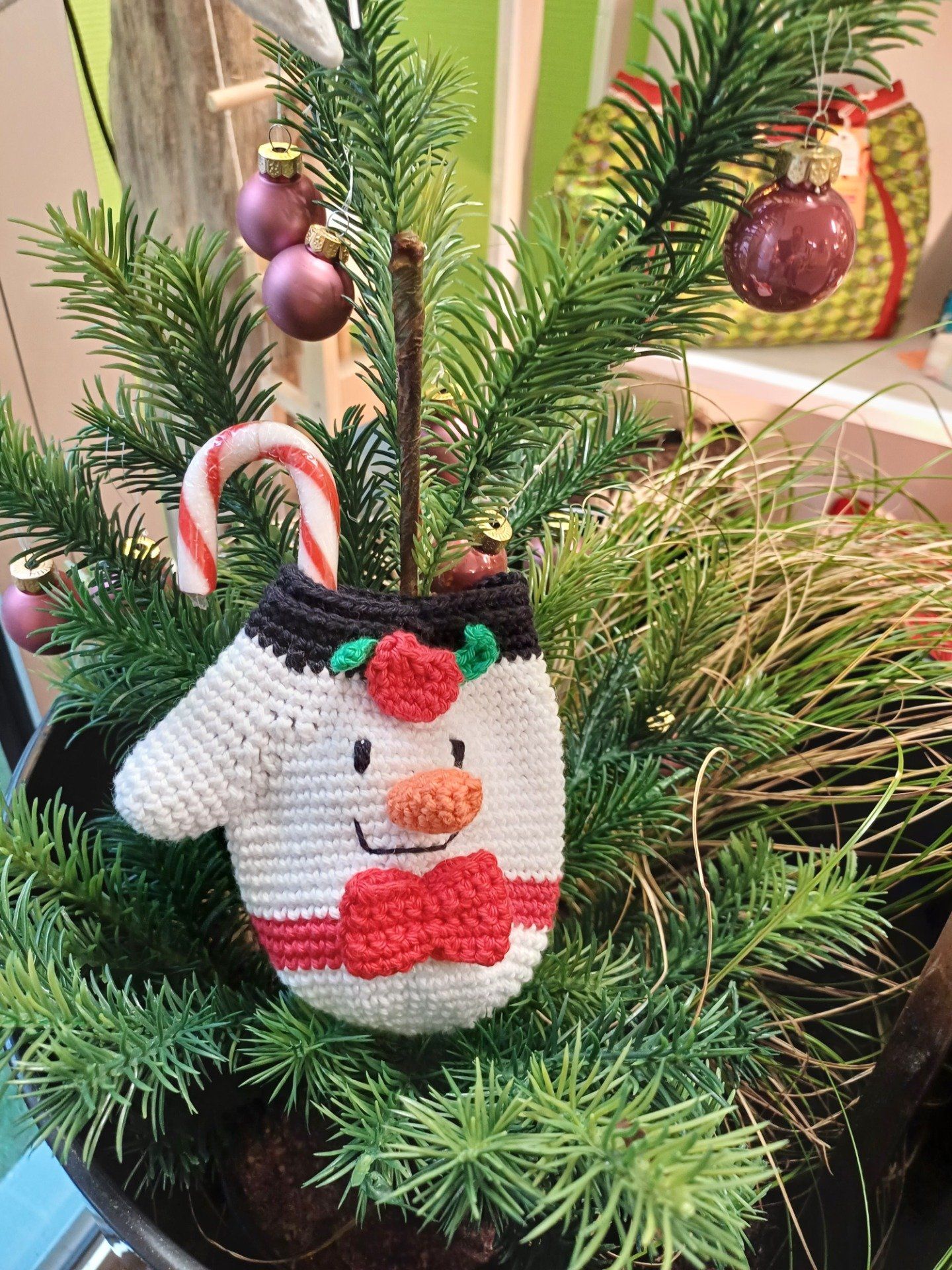 Moufle décorative pour sapin au crochet : Mon petit bonhomme de neige